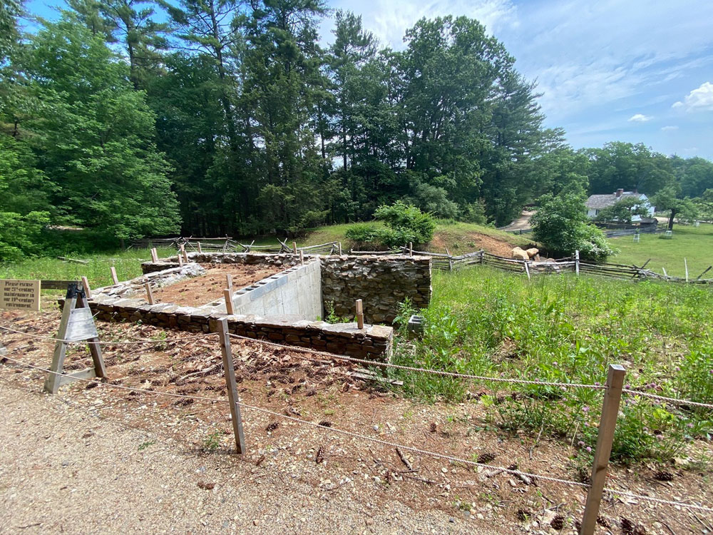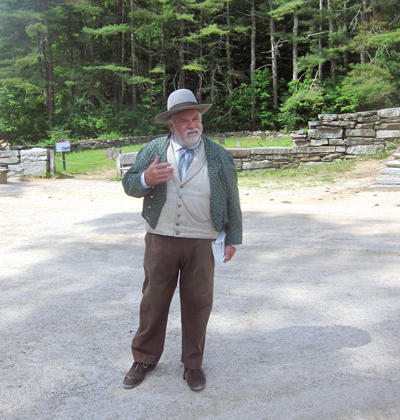 About ten minutes later another woman arrived. I jumped up from the mill stone heading near the door. We chatted. I explained that I was a gentleman, should let her ahead of me, BUT, I had to be first in the door for “bragging rights.” She acquised, but in the conversation we talked about the limited edition souvenirs, and our plan was to immediately head to Miner Grant’s Store to buy ours. After that, I headed to the Center Meetinghouse for the “Common Curiosities” tour. Tom was amazing with his historical information. A great memory and a wealth of information from his 38 years at OSV. I later learned he is a lead interpreter that everyone looks up to. Tom, I am ready to volunteer, if only to stuff envelopes. Here is Tom as he began for (sadly) only three of us.