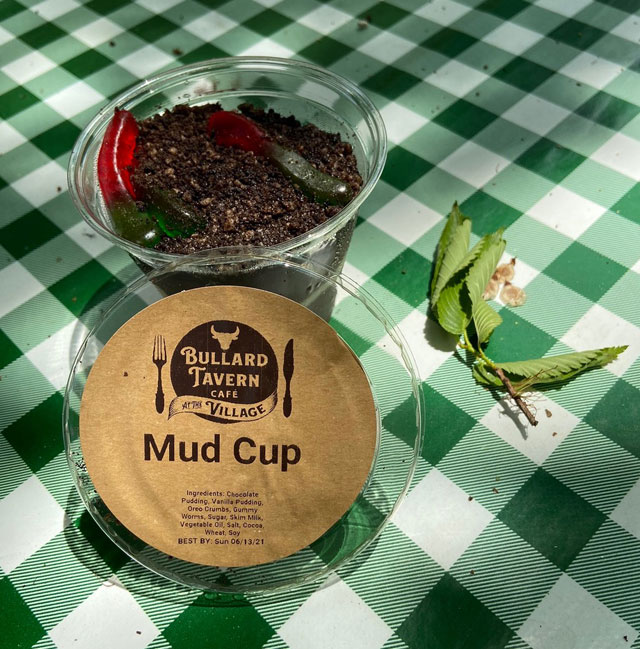 After riding with and enjoying George’s stories I got off at the Bullard Tavern for lunch. I had a shepherds pie (somewhat traditional in the 19th century) and a Mud Cup desert. Much to my surprise there were worms in my desert. YIKES – but on close examination, an extra treat – “gummy bear” worms. Do click image for a squirmy view.