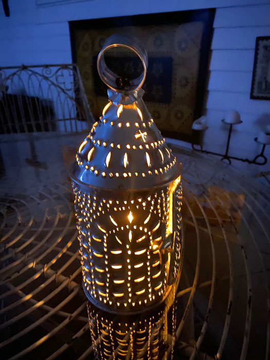 Now, limited number of items, you want a low number, if not Number One. The lanterns were not numbered, but the pitchers were. I searched for Number One, but was told that one of the clerks when unpacking them found Number One and scooped it up. But I found Number Three. I have enjoyed chatting with many people, as you have come to learn, and once outside a fellow followed with his purchase. Ends up he was the volunteer potter who made the pitchers while at home. We had fun chatting about lots of things (including spinal stenosis). He told me that as he laid the pitchers out for numbering he was pretty sure mine was the first made, but placed where it got numbered three. Well, makes a good story, I was first in the door, and have great souvenirs. I lit my lantern that evening when home using a tea candle.
