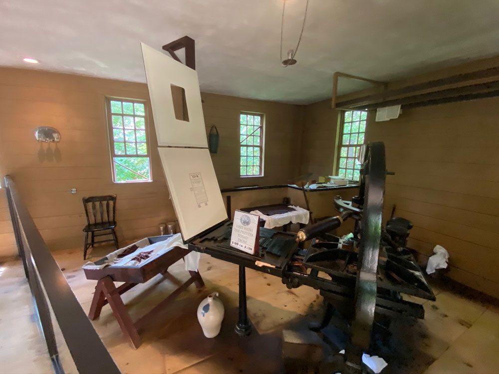 I got my first printing press in 1957, been fascinated with printing, and have a number of presses and equipment to this day. With hobbies of printing, photography and collecting US Commemorative stamps beginning in my pre-teens, it all led to Ray today – publishing and writing history articles, and life is good. The interpreter in Isiah Thomas’ printing office filled me in on much more than how a press operates since I told him my background. A great time. I learned that this press was among the items first purchased by Wells as his collecting mania began.