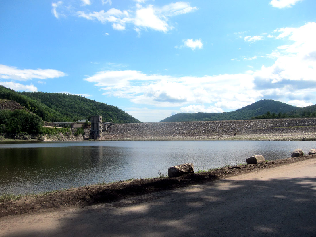 Back out to Route 30, I headed north again on a section I may never had been on before. I turned right onto Ball Mountain Lane traveling a distance to the Ball Mountain Lake and the dam. I walked out to the inlet station which is about as high as the 265 foot high dam.