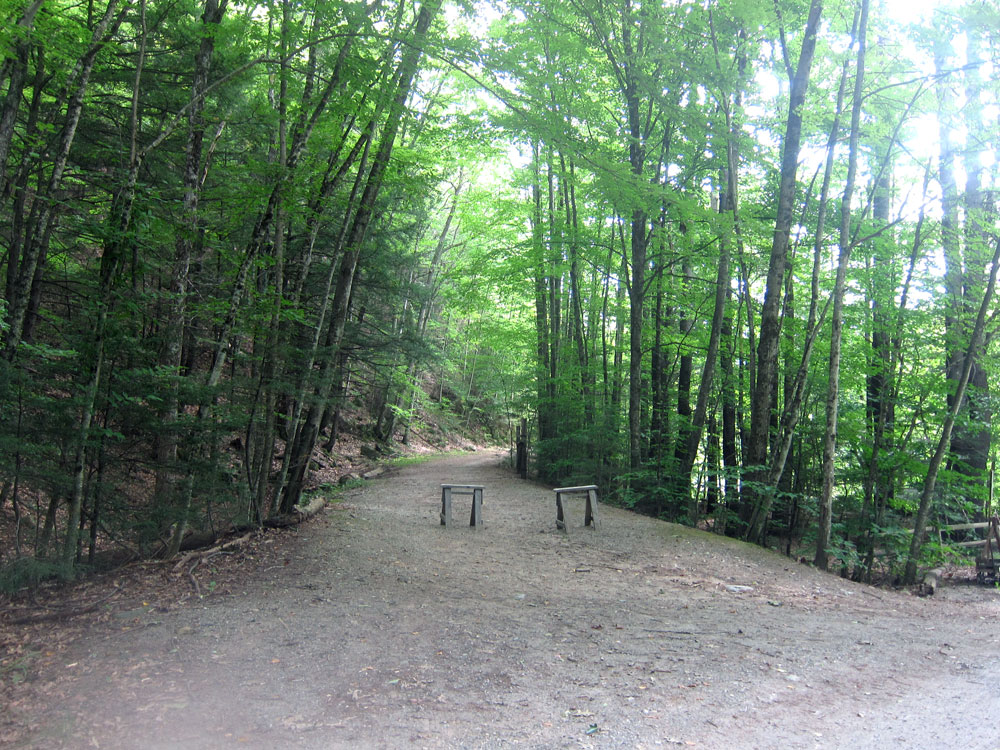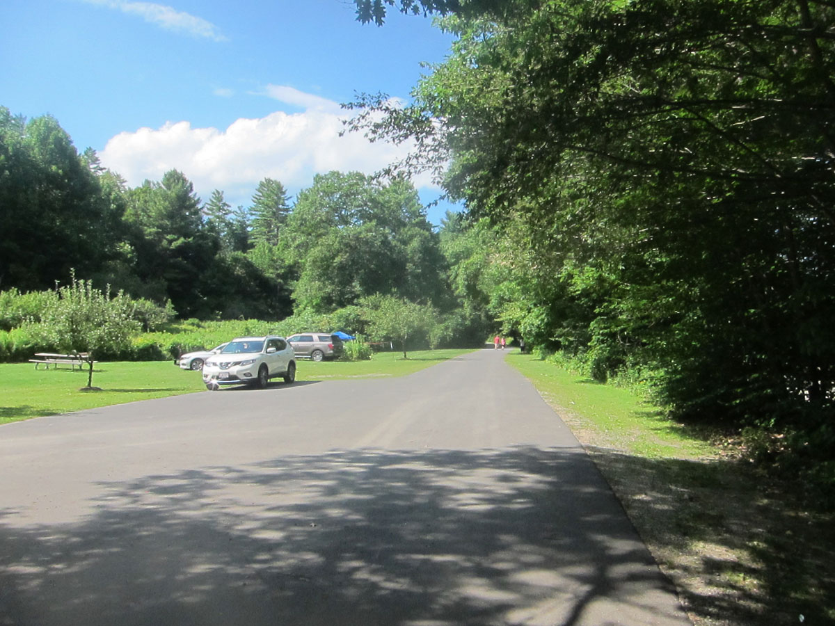 looking to the south from the park entrance, here is the old rail bed, now the West River Trail.
