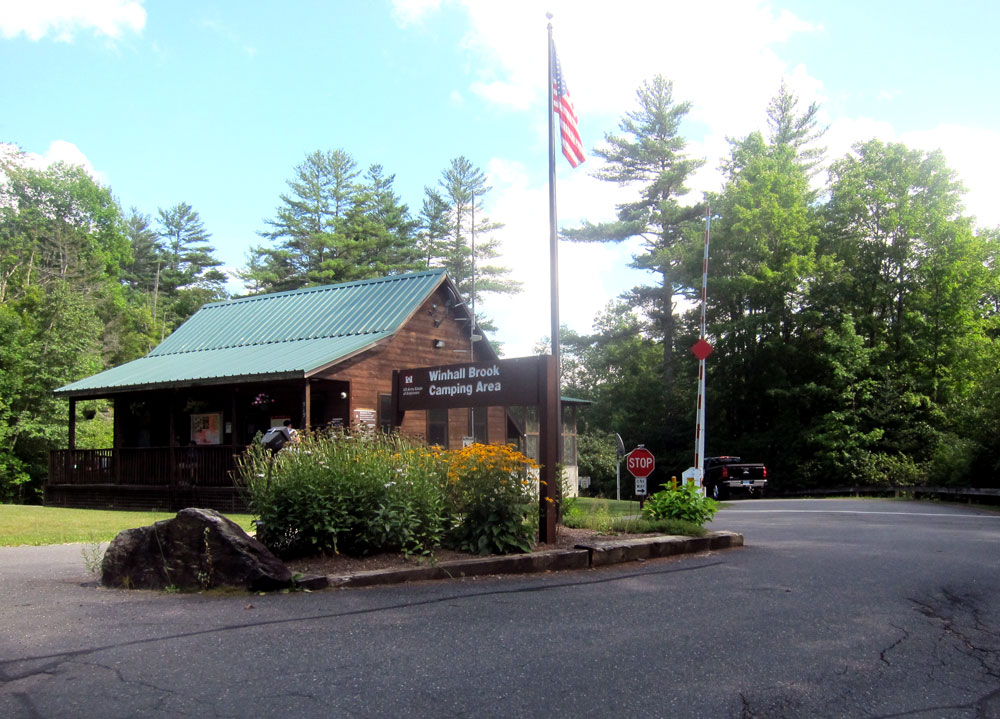 One more location to find – the no longer extant Winhall Station. Off Route 30 I turned on Goodaleville Road, which on my old map should have (at least once was) Winhall Station Road. Took a chance on next road – wrong, but at the end a nice couple said how to get to Winhall Brook Camping Area, and the area where the railroad was. I arrived there, another Army Corp of Engineers project and facility.