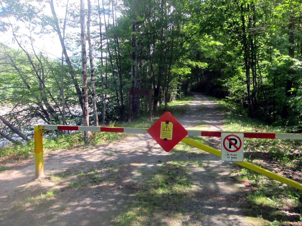 and, a closeup of the beginning of the trail continuing on to South Londonderry with the West River to the left.