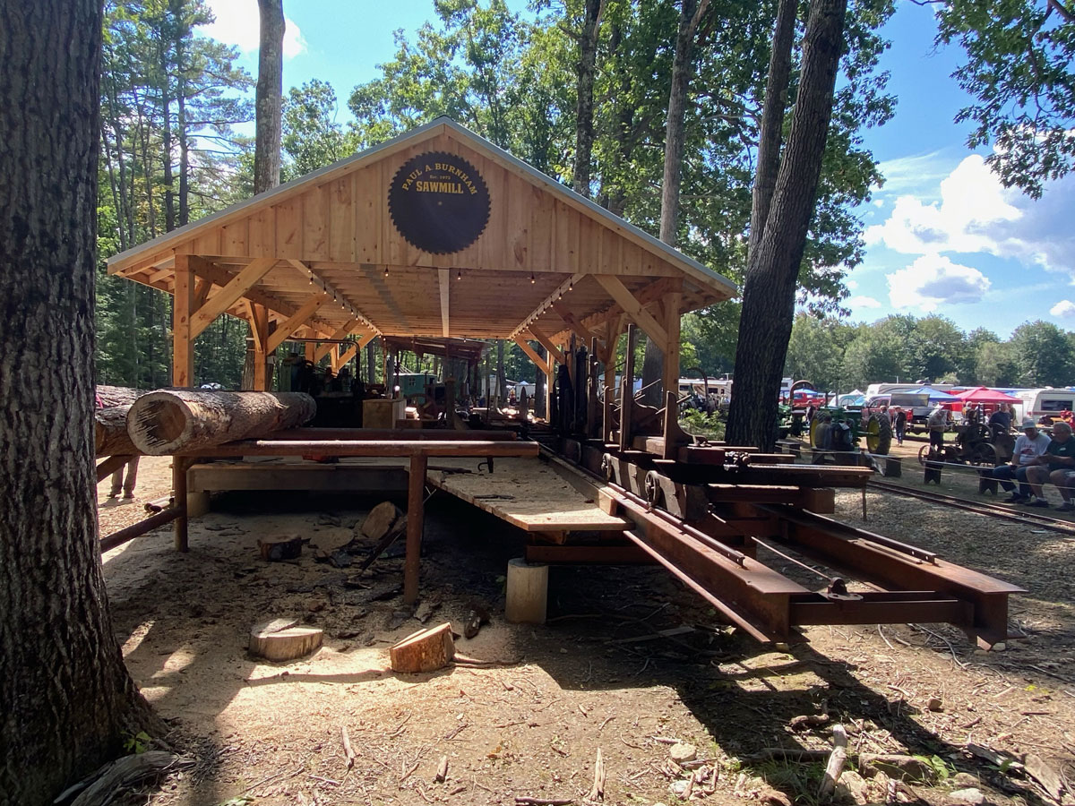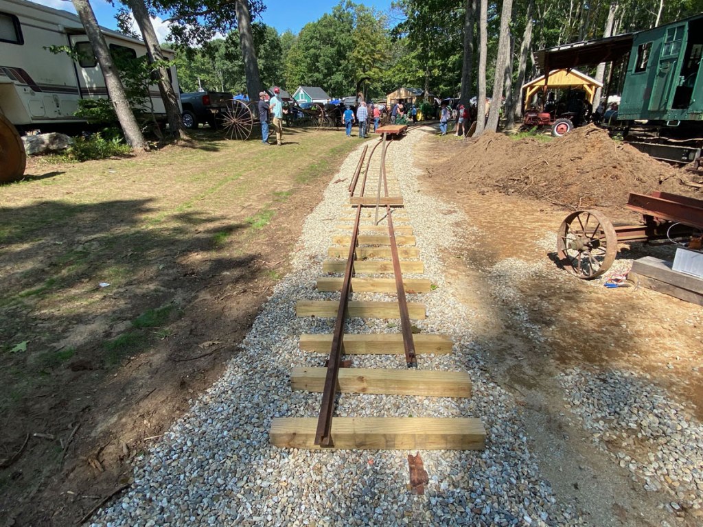 I mentioned above that much building and expansion had been done on the grounds. There are three new buildings with club exhibits where I used to park, and a previously wooded area has been cleaned for a sawmill (hit ‘n miss, of course), and construction for the train which will eventually circle the field (I asked).