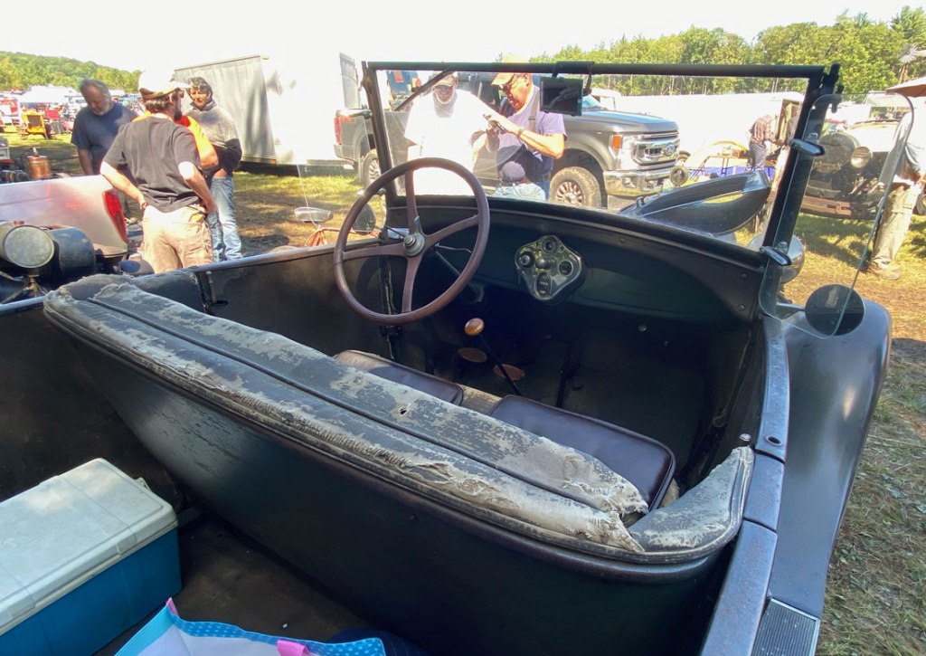 I love cars in their original condition. The 1928 Model A Ford four-door phaeton below had all the early features AND the original upholstery. Only two towns away from me, they threw me a number – I was tempted.