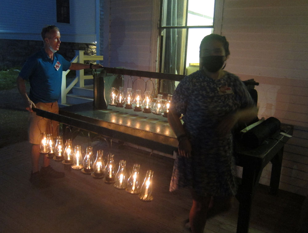 There is a tradition in the evenings of a candle light walk to the chapel, built in 1800, for a short welcoming service. One of the few times for an open flame (but in this case protected), participants receive their lantern on the porch, and walk up to the chapel, where the lanterns are hung on the original wall hooks.