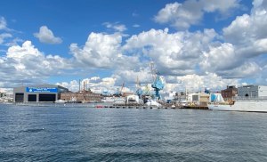 and, back in the river passing the Portsmouth Naval Shipyard – which you should know is in Maine.