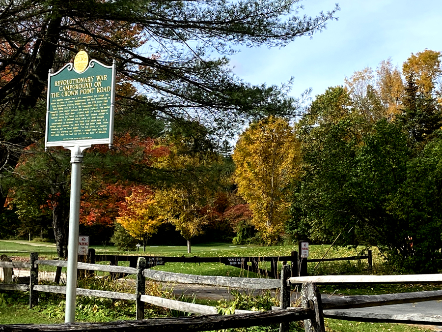 lots of history here — Vermont’s Gold Rush, and route of the Crown Point Road with a Revolutionary War encampment. These two state signs tell you all — for a start.