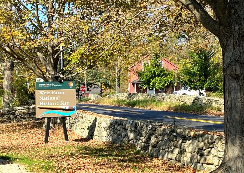 I usually “don’t do the past” but I did for a sad occasion — a friend I have known since before kindergarten passed away in July 2020, in North Carolina, and her memorial gathering and internment (due to COVID) was not held in our hometown of Wilton, until Saturday, 15 October. About a three hour drive, but more than five decades away in my past. I describe my now “hometown” as my original “hometown” of Wilton was when I was growing up in the 1950s. It is not even close today. But I wanted to re-explore some of my past to see changes – and boy did I. The plan was to travel down on Friday and start those explorations where I used to play in the 1950s – what is now Weir Farm National Park.