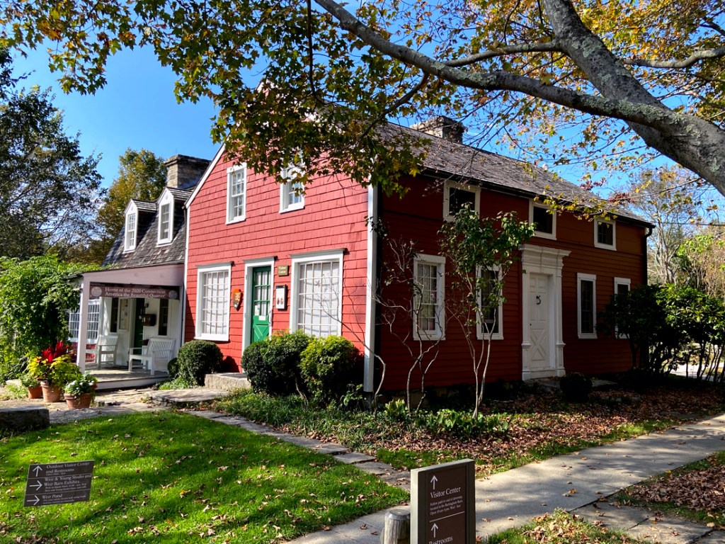 Below is the Burlingham House Visitor Center, which bears the name of Julian Alden Weir’s youngest daughter, Cora Weir Burlingham, who lived in this house from 1931 to 1986. As a child, walking about five miles around a big circle of roads Halloween trick or treating, she would invite me into the dining room to make my selection of treats. Trick or Treating back then was not grab and go. People would invite you in, and spend lots of time trying to guess what you were and who you really were – even though they usually knew.