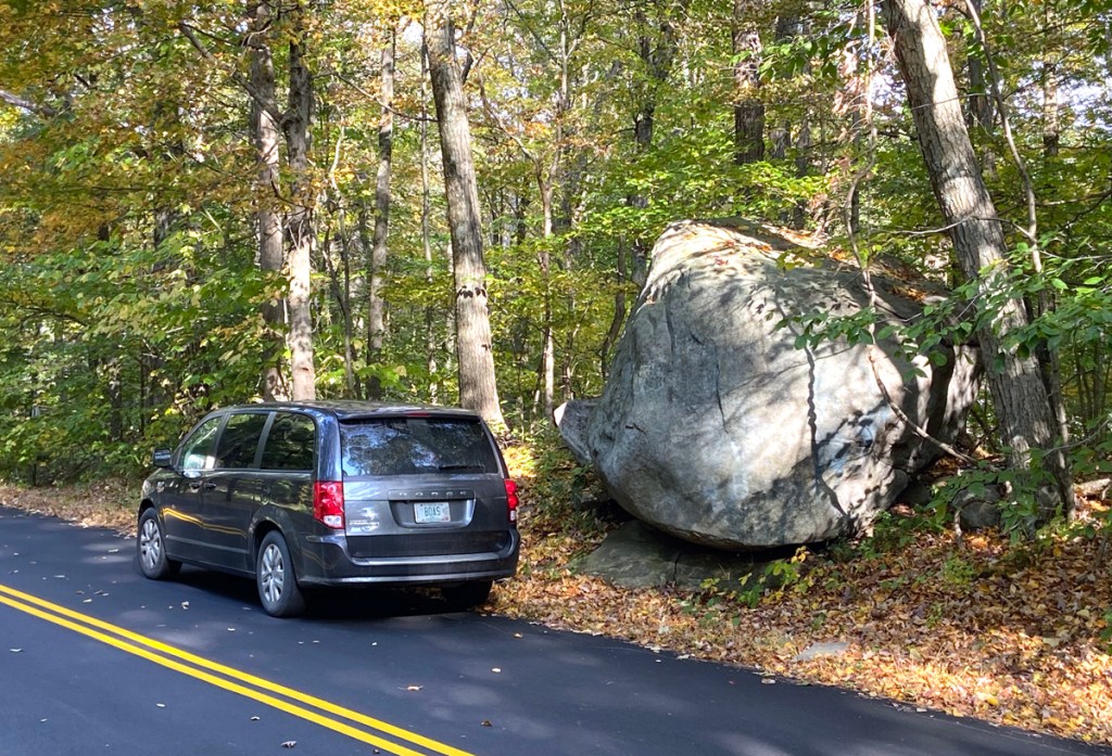 Then I headed back up Nod Hill Road to my old home area. I wanted to see first this Glacial Erratic that is opposite the southern part of the former Boas land. I am still fascinated by Glacial Erratics, and seek them out. Don’t think I ever made it atop while stopping on my bike.