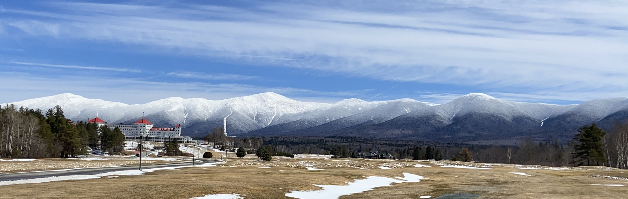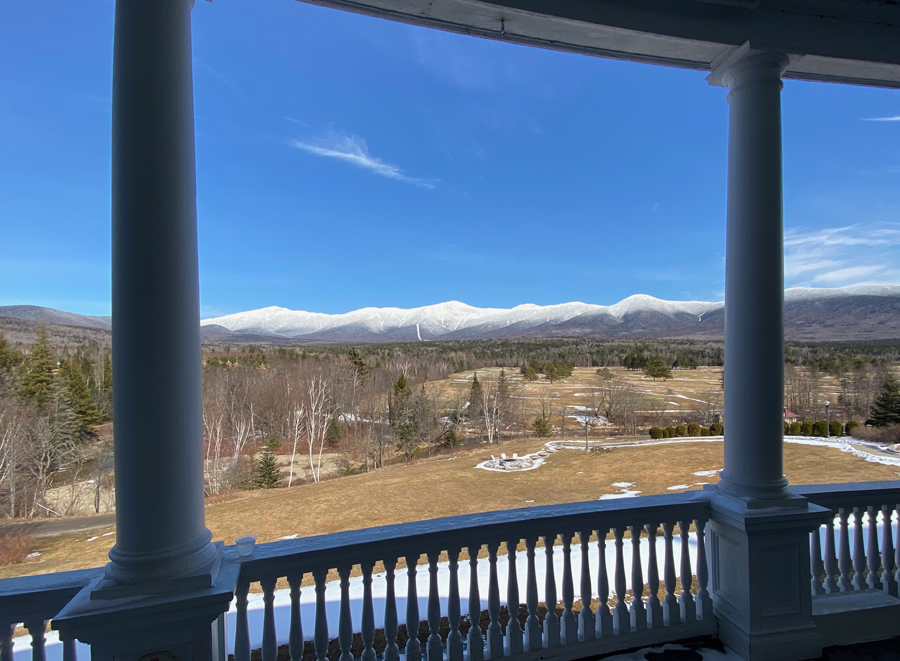 Still hard for me to get “back on the road.” Things have changed so much due to the pandemic, but recently things appear to be rebounding, and folks are comfortable not hiding their faces. Remember in 2019 I had an opportunity for a stay at the Mountain Washington Hotel in Bretton Woods at a special rate? Again it happened, and three nights I booked, 30 March through 2 April. Arriving, how can you not be “wowed” by this view? (do click for full screen view)
