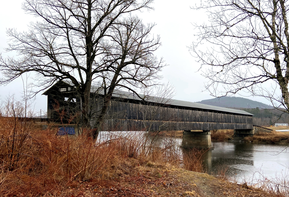 I headed to Lancaster to visit Potato Barn Antiques, which I have enjoyed, only to find them closed (unadvertised) until May. But, no problem, I was headed on “new” back roads to St. Johnsbury, Vermont. The Connecticut River in this area flows basically east to the west (before sliding south to the Sound). Jumping back and forth, I discovered (and crossed) the MT. ORNE BRIDGE between Lancaster, New Hampshire and Lunenburg, Vermont.
