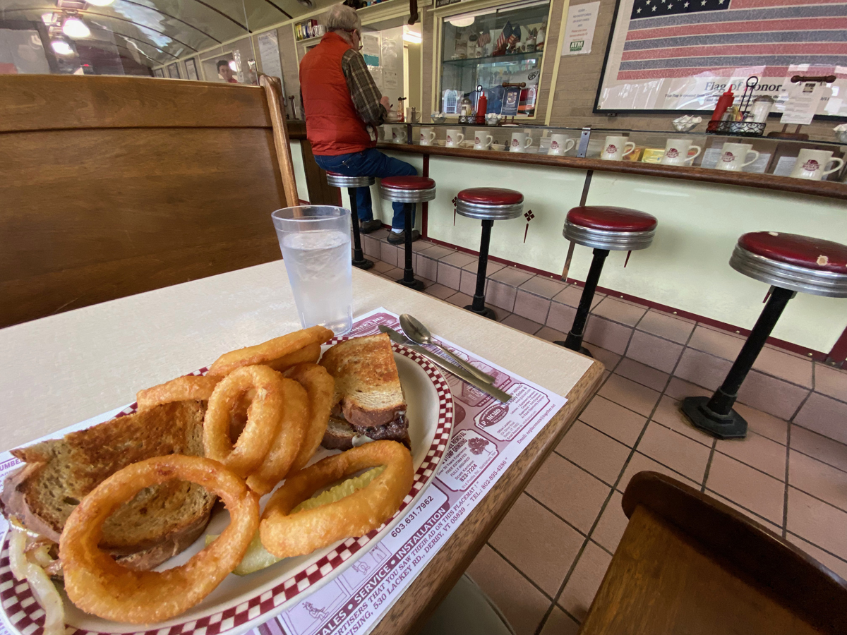 Arriving in St. Johnsbury I visited the Visitors Center in the wonderful old railroad station, and (as typical of Ray) collected brochures for study and planning. I decided to not hit the museums, but instead focus a trip in the North Country in the future to include St. Johnsbury explorations. So, I picked up the old route back to Littleton, New Hampshire, arriving at the Littleton Diner for lunch about 1PM. The diner opened in 1930, and I had a fun lunch, and for memories purchased their classic coffee mug – you can see them in the case on the counter in the image below.