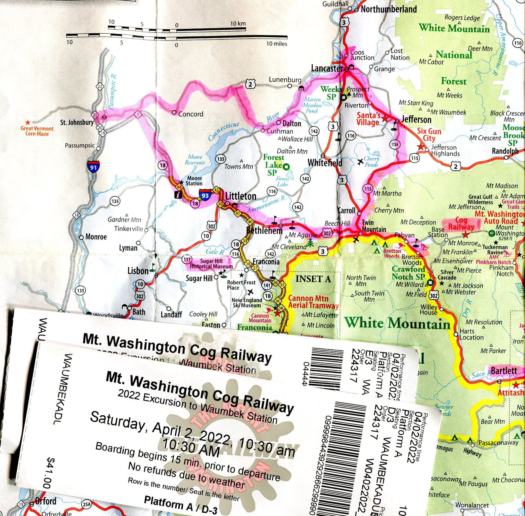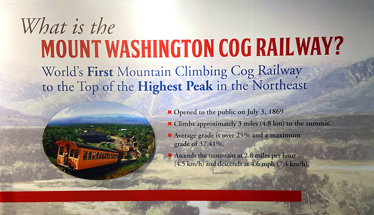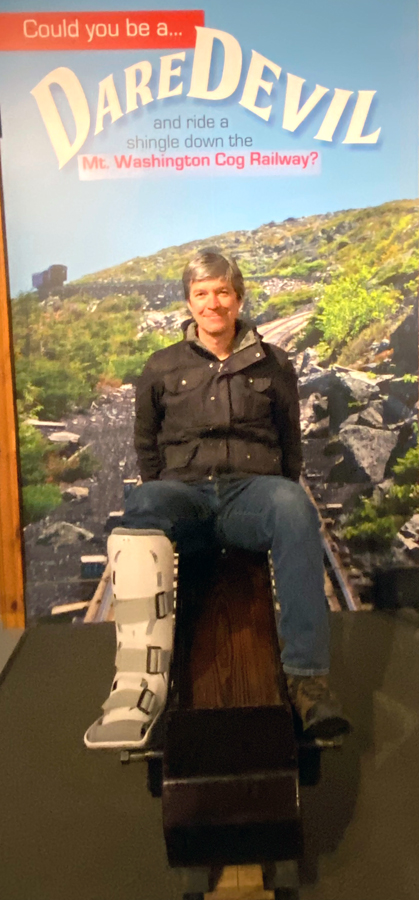 My original plan for Saturday after David would have left to hike, was to take the Cog Railway (running since July 3, 1869) which two years ago began winter trips, but just to the water stop 15 minutes up the mountain. I had taken the full trip back in 2013, David has hiked the mountain (and slept on it) many times. You may enjoy the many pictures and videos I took on my 2013 trip on the “Railway to the Moon” by clicking this link. So, watching the weather, we decided to catch the 10:30 trip. After purchasing tickets (shown above) we had time to head into the museum.