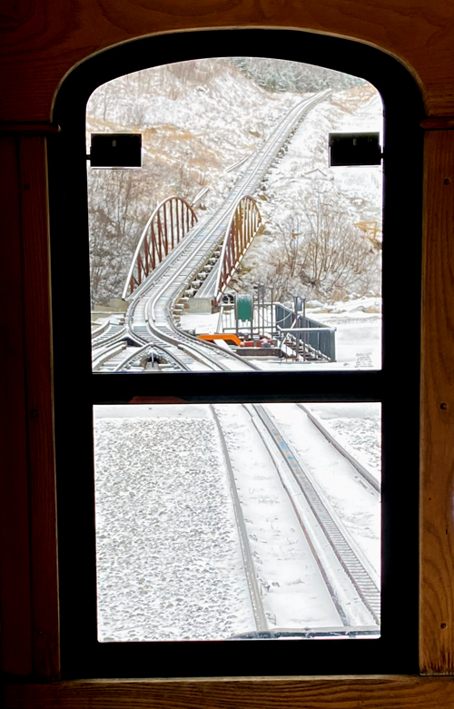 I admire you for taking the cog rail trip-especially in the winter. When we were there years ago in the summer, I was too chicken to risk the ride!