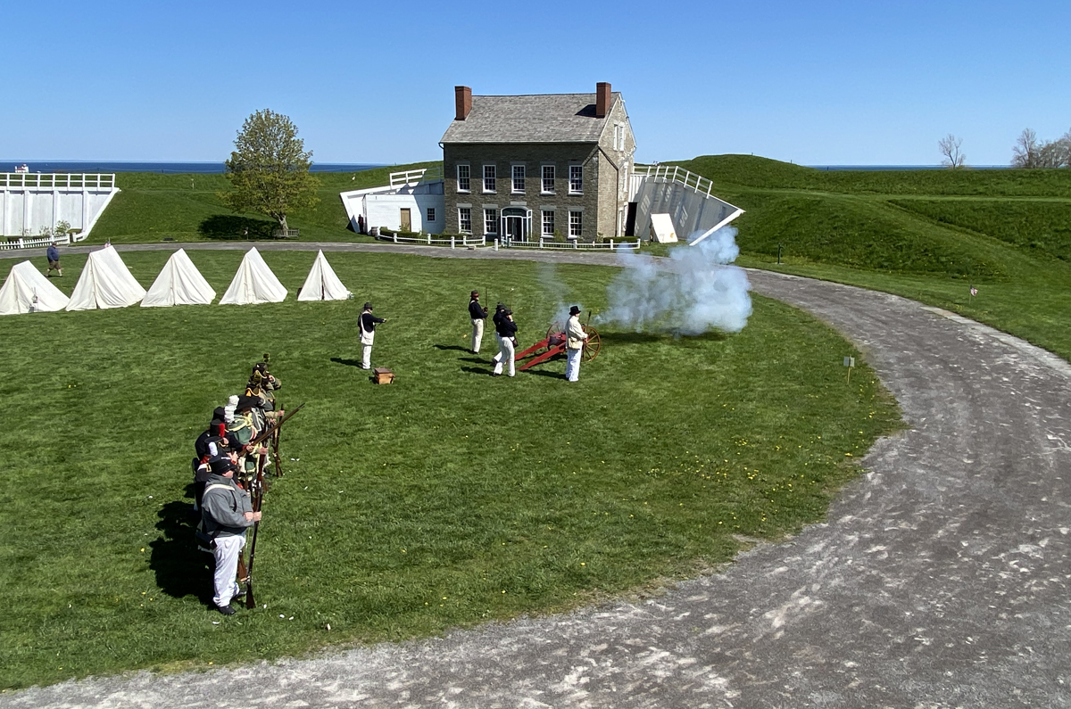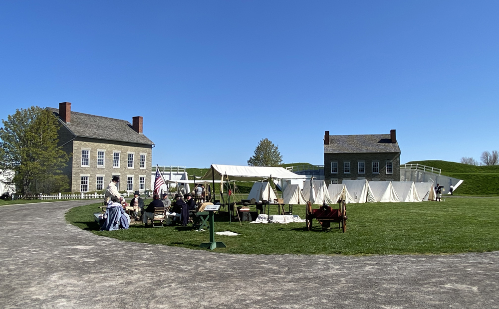 SUNDAY – 8 MAY – I had until 1PM when the program began. I was not able to see Fort Ontario when I was quickly through in 2019, and was thrilled to learn the fort would open at 10AM for a War of 1812 Drill and Training Reenactment Event – and I was there before the guard doors opened. The current star-shaped fort dates to the early 1840’s with 1863 to 1872 improvements portrayed in the restoration. Its history, due to its strategic location, dates to the French and Indian Wars, and before. “The fourth and current Fort Ontario is built on the ruins of three earlier fortifications which were the site of three French and Indian War and two War of 1812 battles. It was occupied by the U.S. Army through World War II. From 1944 to 1946 the fort served as the only refugee camp in the United States for mostly Jewish victims of the Nazi Holocaust.” With a history of almost 300 years, I would not mind going back. I did purchase the fort’s history book, and for some quick learning here is a website to check out.