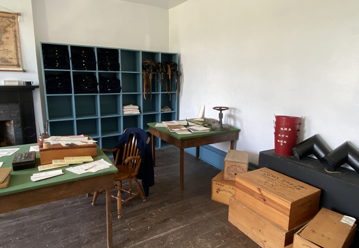 some images around the fort. Inside one of the staff rooms it was gratifying to see a copy press properly described (in the rear of the lower right image). Used in the 19th century to make copies of letters on moist tissue paper, copy presses were also used for small book binding, and normally (by the uninformed) called book presses. The barrack’s tiers for sleeping were three high, and moveable for thorough cleaning for good health.