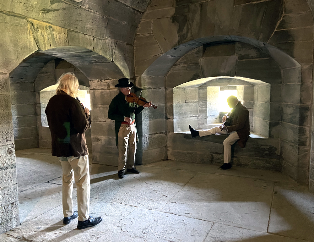 In the intro video (always the place to start) I saw passageways in the fort walls. Of course I asked, and learned there were two openings atop the walls that are open. I found them, and down below found this musical group enjoying and entertaining.