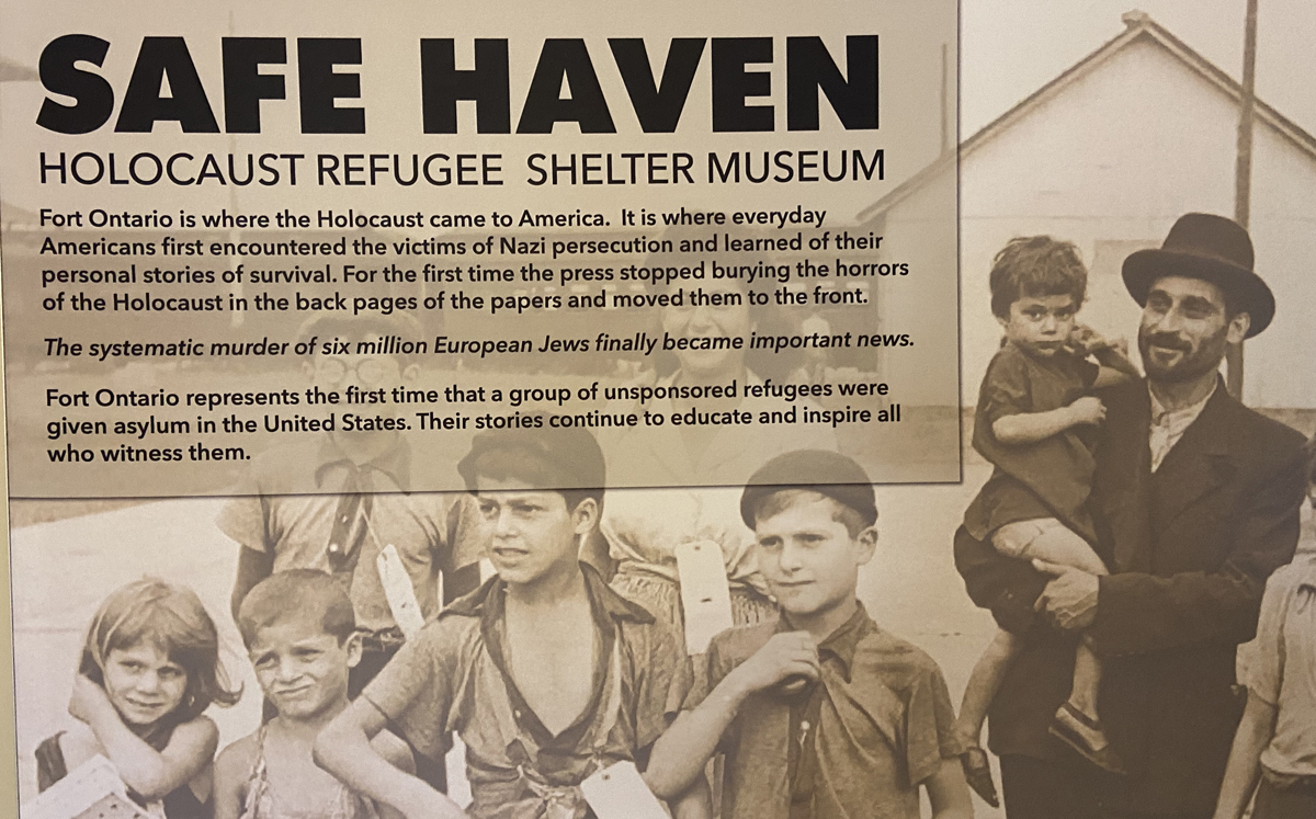 Also “on the list” and I had time, was a visit to the Safe Haven Holocaust Refugee Shelter Museum. on the grounds of the fort. Here 982 refugees from World War II were allowed into the United States as “guests” of President Franklin D. Roosevelt. These refugees were housed at Fort Ontario from August 1944 until February 1946. The museum is in one of the remaining brick buildings from the US Army days on the grounds