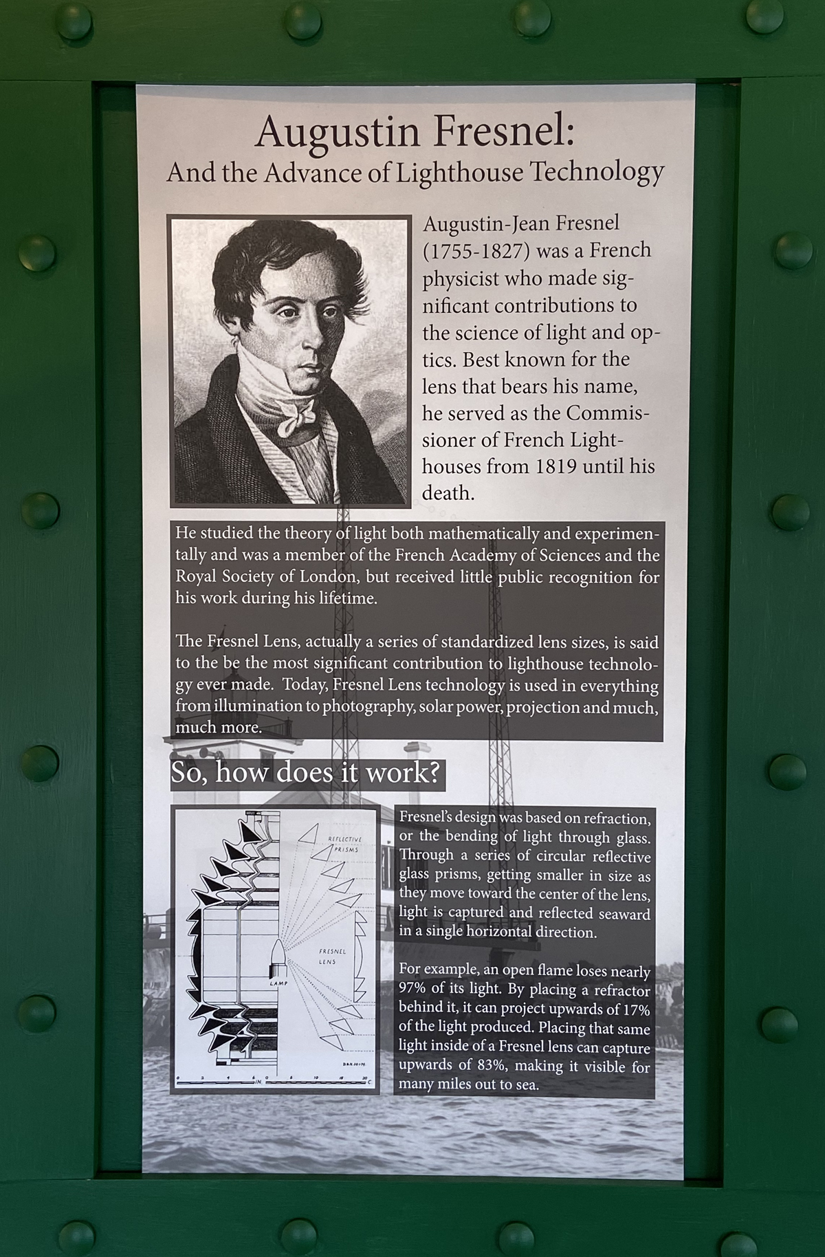 Lots to learn inside here, but I thought fun to share these facts about Teddy, and the workings of a Fresnel lens in a lighthouse