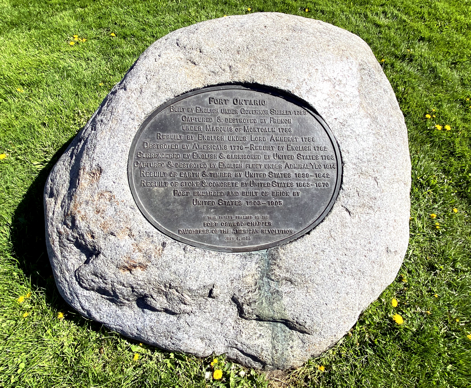 Outside the fort, this stone details the history of the fort – click for easier reading