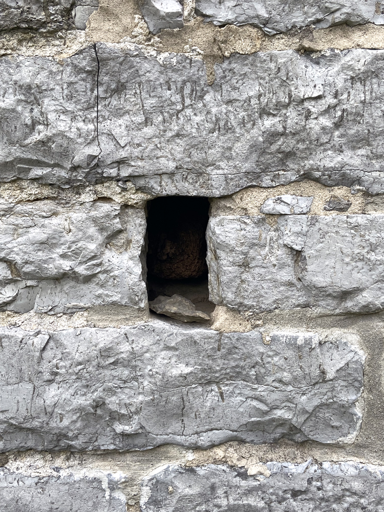 Made of stone, you know I enjoy sharing images with texture. In the walls are slits for muskets to fire through.