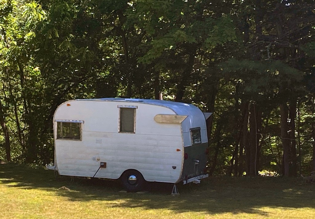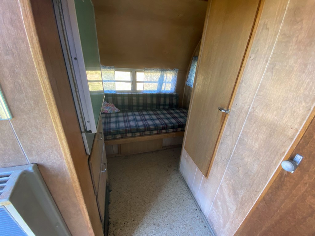 I arrived and was told it had been sold later after I was emailed, but the NYC buyers seemed to have no idea how to move it, to where, and how to get cash. Strange – but, so be it. I asked if I could look inside, and it was nice to see original. Smaller than my “new” LADYRAB III, kitchen in the front, small bed in rear, Stove on one wall, and toilet on the other – but no table or seating. Asking the fellow, who has had many trailers over the years, he replied, “seating? Probably a picnic bench outside.” Even with cash hidden in BLUE BELLE (Gary, I put the “green” back in its location) this became one of those inspections that is an after purchase look that confirms you recently made a good purchase.