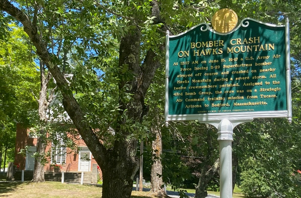 I continued east on Route 131 along the Black River, which I highly recommend, and then headed south on Route 106 to Perkinsville. A great little village, meeting house at the top of the green, and a state marker relating the 1947 bomber crash into Hawks Mountain.