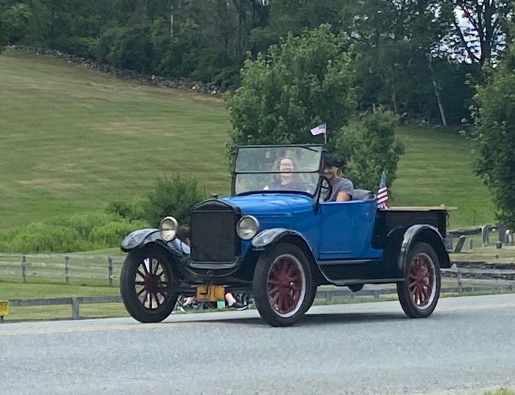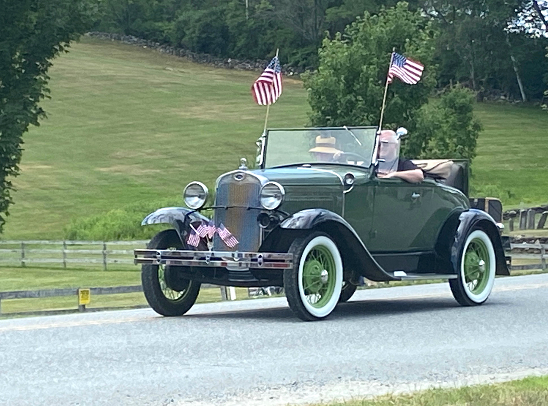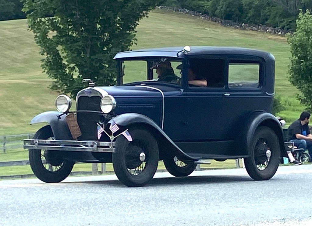 then came some “antique cars.” BLUE BELLE was resting behind me, but in the parade, I have owned or driven most of what was there. First was a 1927 Model T Ford pickup – I learned to drive on my Dad’s 1919 Model T Touring car. Then came a 1930 Model A Ford Tudor Sedan (sold mine a few years ago). And finally was a 1930 Model A Ford roadster. Moved mine with me to NH 20 years ago, selling her only to pay for BLACK BEAUTY’S rehabilitation.