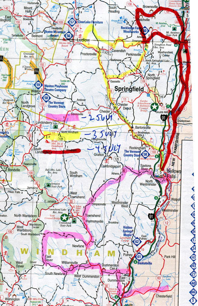 Continuing on, the road opens up to amazing views looking down towards North Springfield, Eventually the road ends at Route 10 where I turned right back to Route 103, Chester and home — now more roads on the map “filled in.”
