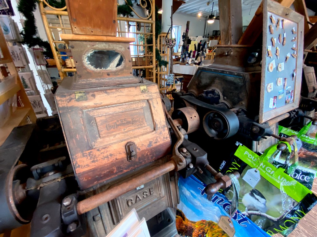 You probably know I enjoy visiting and studying mills. The majority of this mill is a really nice craft gift shop that also has snowflake collectibles. But fascinating and still in place is this original equipment.