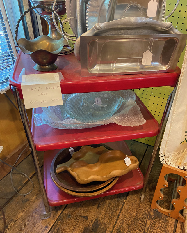 Saturday, my daughter Julie was checking Devi into camp, so our plan was to meet early afternoon at the Shelburne Museum, which you should know I visit as often as possible. Before meeting, there was a small exhibit I wanted to see, but it was opening at 11AM, so I first headed to Essex Junction to an antique center. I had not before been in Essex Junction – a great little town, and Amtrak runs through its center. The book buying was great, and turning one corner there was a red Cosco cart – display only, not for sale. Oh well, saved me money, and I did just finish restoring my Massachusetts Cosco cart purchase from two weeks ago. About five more booths, and there was an original cart, with its original Cosco label underneath – FOR SALE — Shortly SOLD – and loaded into GIGI.