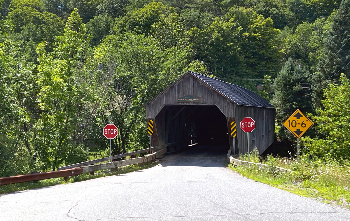 Continuing on more “new to me” roads, I headed west on US 302 (do get your Vermont map out) and then south on VT 110 through Washington, turning east in Chelsea on VT 113 through Mill Village, West Fairlee, Post Mills, Thetford Center to Thetford Hill. I once stumbled into Thetford Hill, probably from the east – but was thrilled to see it again. Make sure you make a short side trip from Exit 14 on I-91 to visit the Common. From the extremely picturesque village green I headed south on the back road taking in amazing views to the east. Going down and around you soon arrive at the Union Village Bridge, built in 1867.