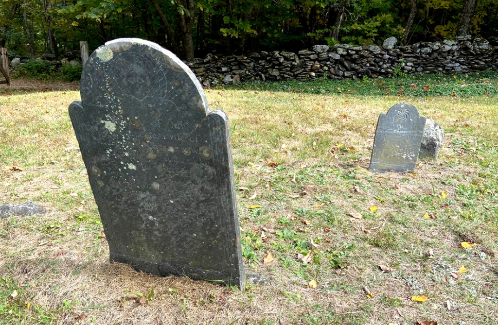 Further up Carpenter Hill Road and around a bend is the cemetery, built on a hillside. Why? Hillsides are not ideal for farming or grazing, so a good use of the land.