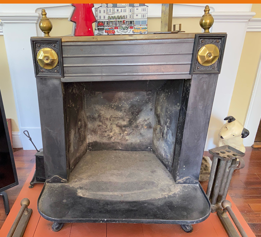 At an event at Historic Deerfield I was chatting with an architectural historian. He promised to visit his next time in Walpole. When he entered my front door a few years back he said, “stairway and banister appears to be an 1850 era modernization.” And in May of this year I met the grandson of the founders of Historic Deerfield. He is now retired as former director of Historic Deerfield, and lives across the river. We chatted, and I shared images. He concurred that my mantels and entryway appears mid-19th century. He encouraged me to look for foundry markings on my stove. I did, and with the name information was able to date my remaining stove to c1850.