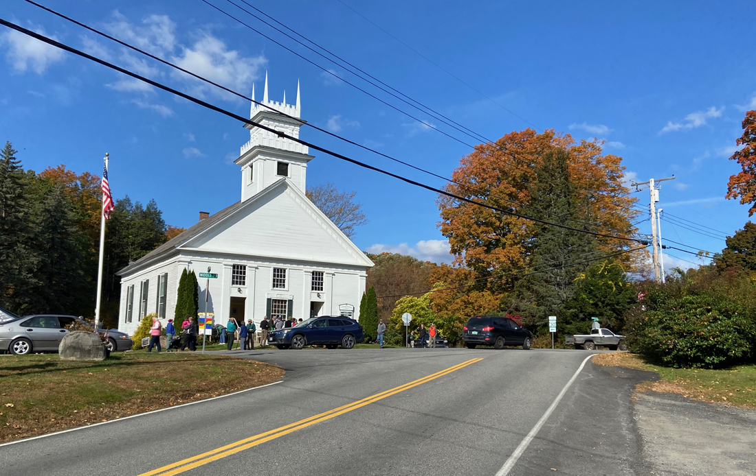 Sunday, 9 October, it was off to enjoyable Dummerston, Vermont, for the Dummerston Apple Pie Festival. Begun in the 1970s, but not held since 2019 due to Covid. I enjoy exploring West Dummerston, Dummerston Center and East Dummerston. And, you should remember that in Dummerston is Kipling’s Naulakha, and the Scott Farm, not to mention the Dutton Farmhouse. And, there is also the campground where LADYRABIII will attend the vintage shows in May and September next year (you will want to attend the Merry May Vintage Camper Show show May 19-21 – I am already working on decorations). Below arriving up the hill from the east into Dummerston Center.
