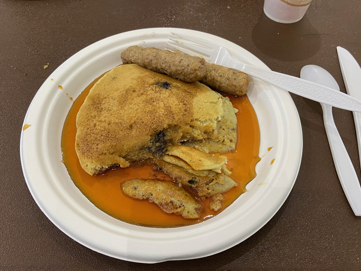 The size of the pies was overwhelming, but the pancake breakfast I could handle. This is how they do it in small town northern New England.