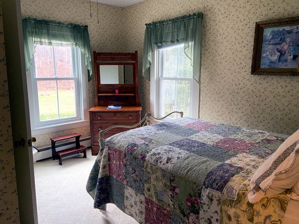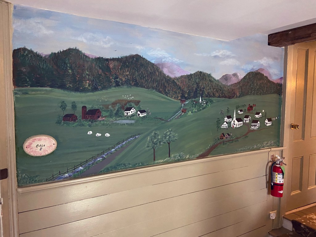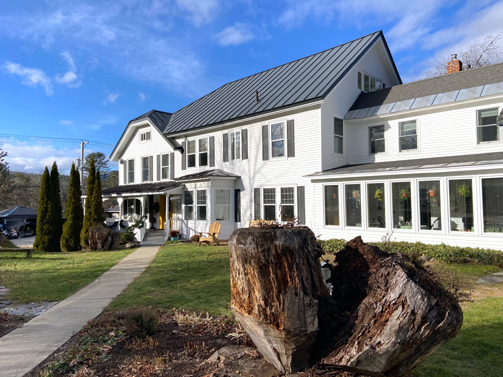 From Grafton it was over the hill to Chester, and west on Route 11 to the Stone Hearth Inn. COVID closed many inns and B&Bs, and also saw changes in ownership, as is the case here. The new owners are doing renovations to the restaurant and bar area. While we were there the new owners were baking, but we visited with greeter, John Clark. A local Chester historian, I gave him copies of my history books, and hope to share stories at some time with him. Below is the Inn as I got out of the car, and the sitting room.
