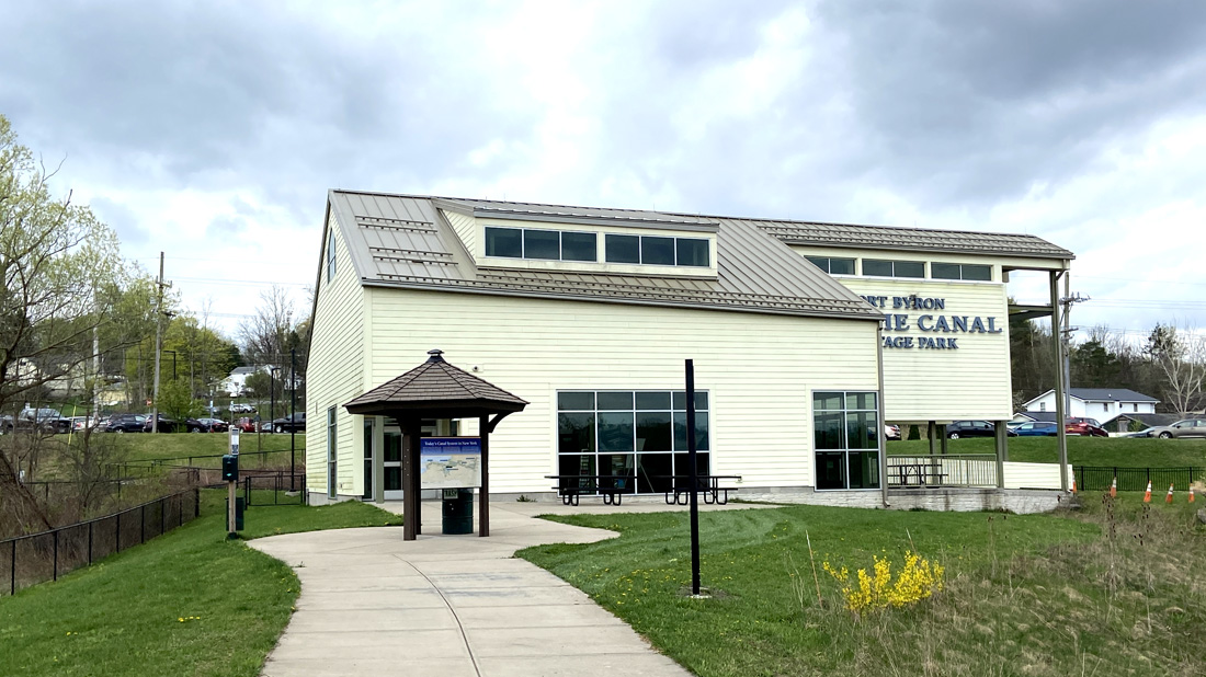 In preparing this post I finished relating the full day tour on Monday, and then realized that I left you hanging on Sunday 23 April pending my arrival for the afternoon with the group. Remember I ran hard in the morning turning over many rocks. So, Monday is below, and I will be brief with some fun images taken Sunday afternoon starting at the Port Byron Old Erie Canal Heritage Park. Remember, if heading east on the NY Thruway – STOP IN, or if on back roads in the Port Byron area, park, walk down the path, and STOP IN. This first image is the museum, looking back from the park walk from the lock.