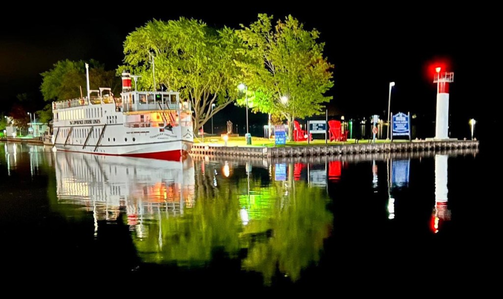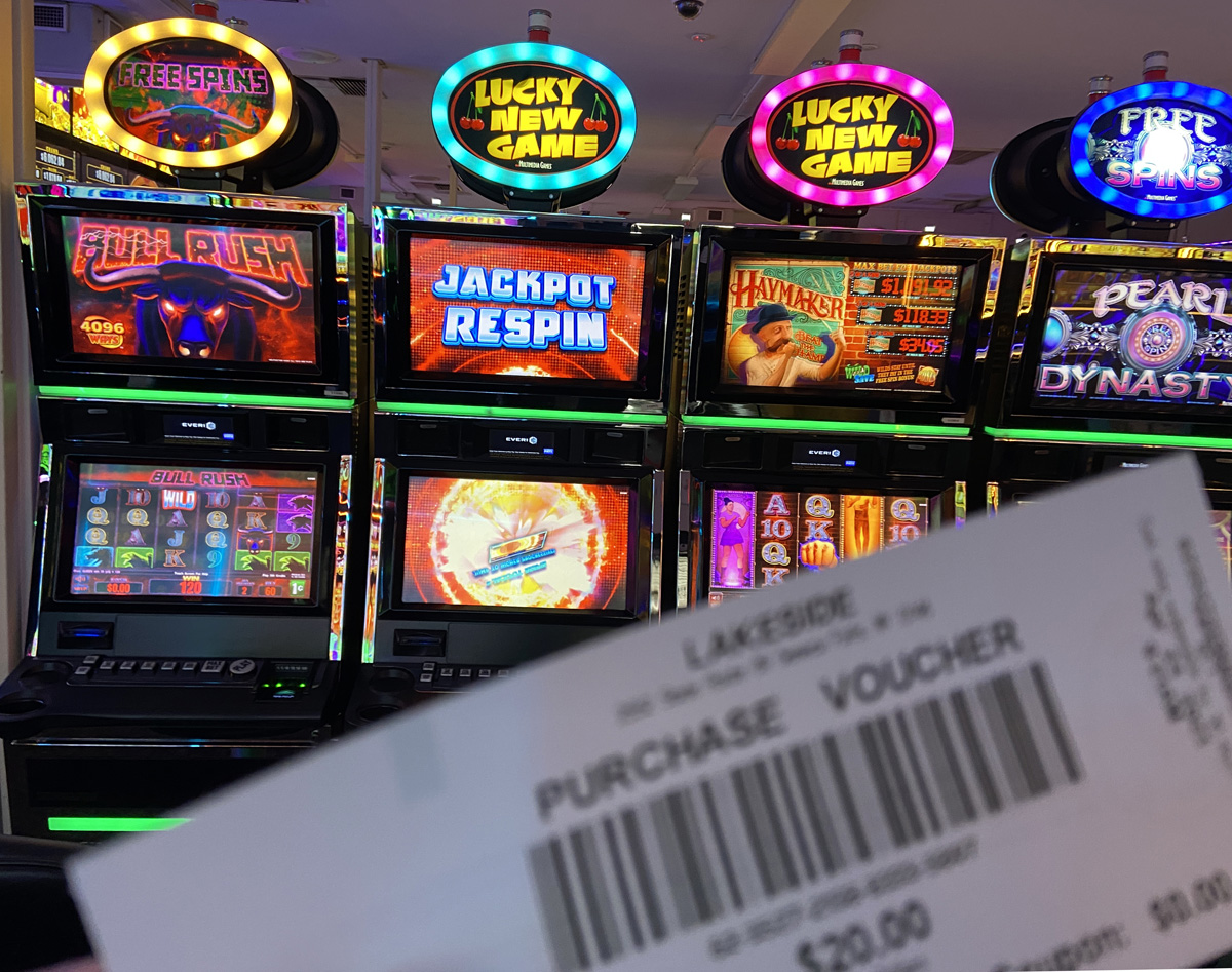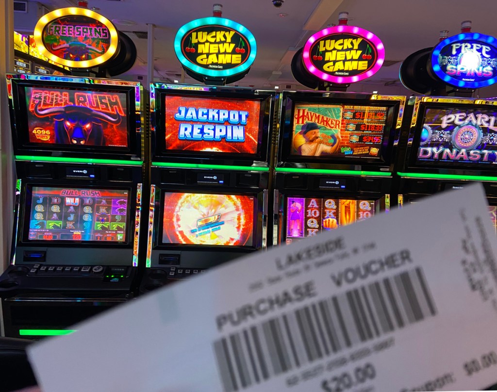 The area we are exploring is within the ancestral lands of the Cayuga Nation. We drove through the lovely landscape, and stopped and were welcomed at Lake Side Entertainment in Union Springs. A new building is being constructed, but the current entertainment (casino) is in a former auto parts store in a “butler building.” We were each kindly given a $20 voucher to “play.” I had no idea what to do, but figured out you put the voucher in the machine and push a button and watch the points and dollars go up or down. Push stop and a new paper voucher spits out with your “current monies.” In time I went to a machine in the corner, put my voucher in, pushed play, and the machine played for maybe ten minutes. Even pushing stop did not work, I thought I had broken the machine. Finally, wearing itself out, it stopped. The screen read $33.52. I figured, let me print the voucher, and cash out. THANK YOU.