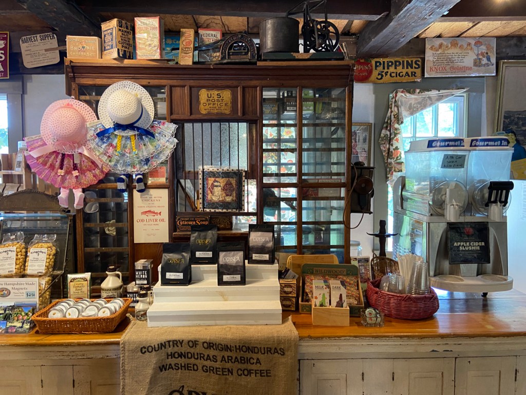 My planned route from Bristol to Polar Caves was up the west shore of Newfound Lake, first stopping at Sculptured Rocks Geological Site and Natural Area State Park. You may know that I have become fascinated with geology in the area. But first I stumbled (again) into the Cardigan Country Store – and you know I love old general stories, so stopped again.