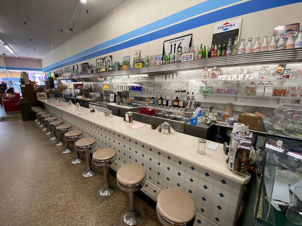 The Laconia Antique Center is in an old department store building and they have preserved the lunch counter, which I must share below.