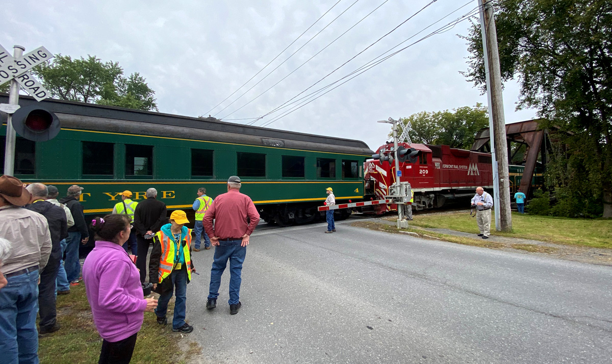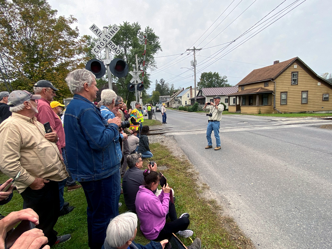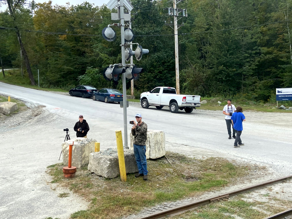 BUFFIES and FOAMERS did we say? Well, here you go, and there they are in the image below. BUFFIES – rail buffs — FOAMERS – pure fanatics. Below some BUFFIES in Chester. From this point on at most all grade crossings and alongside roadways with straight unobstructed views these folks were there with tripods and cameras. Several pickup trucks with folks filming from the bed, often a dozen or more folks. No sooner would our train pass they would jump in their vehicles and speed off to the next location to capture the train on film — so fanatical, at one point I saw a car jump a stop sign and cut off a car. No accident, he/she was at the next filming spot. Hey, “different strokes for different folks,” do they still say that?