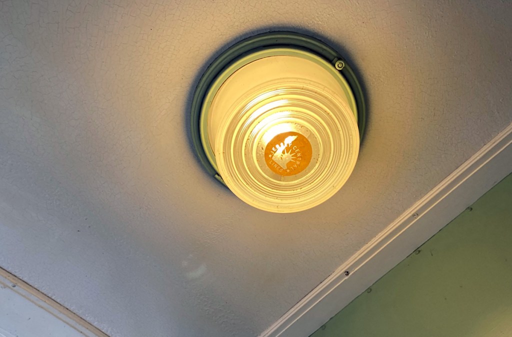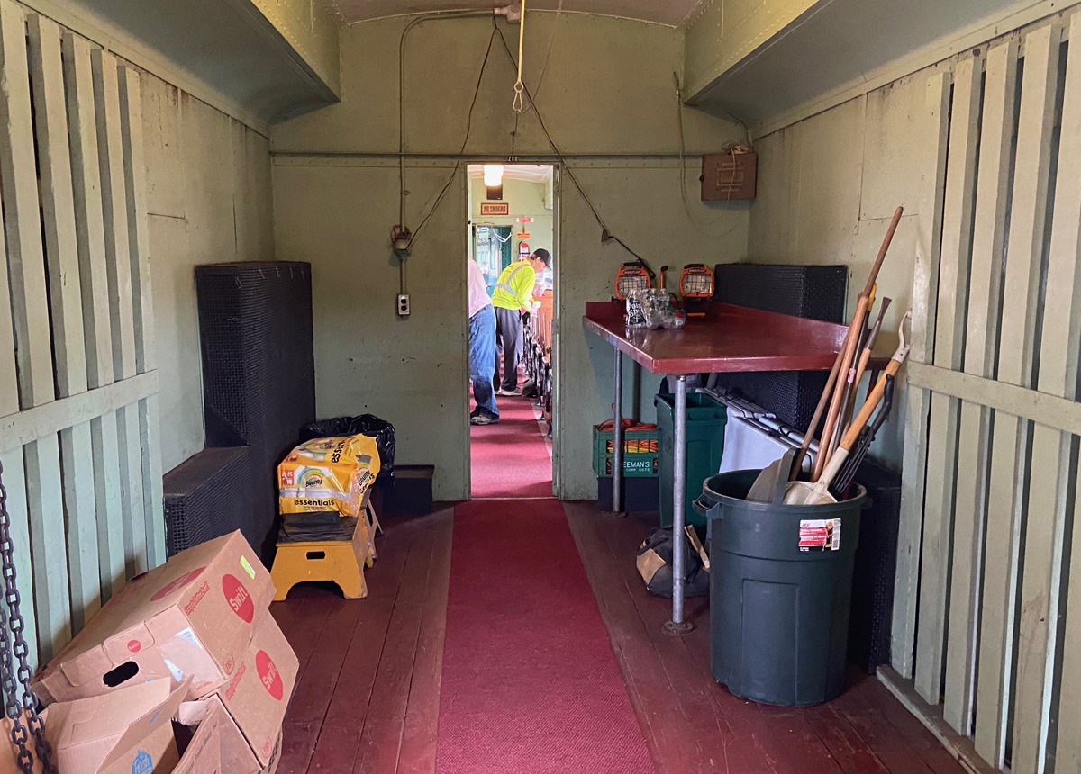 reboarding in Rutland, here are some views of the cars as follows: 1- baggage space in my coach 2- spacious car with tables 3- car was open observation deck 4 – lamp in my car with wording JERSEY CENTRAL LINES