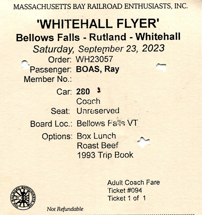 BUFFIES and FOAMERS – words that should grab your attention, did mine as I heard co-travellers use the terms, and now I have two new phrases, and in time will explain. Believe this adventure began with something I saw on Facebook — a train trek on the “Whitehall Flyer” – a train excursion sponsored by the Massachusetts Bay Railroad Enthusiasts, Inc. last happening thirty years ago in 1993. Only took me a couple hours after reading to book my trip.