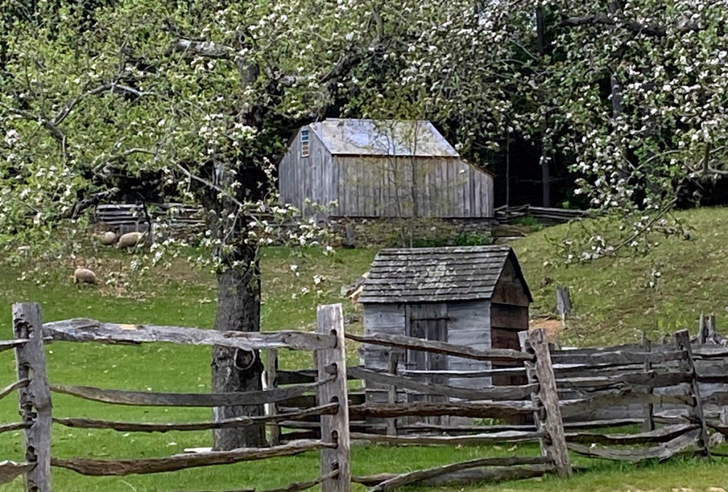 It was a different, but as always an enjoyable experience. I enjoyed seeing many school groups enjoying the village. I also noted much renovation work in progress to the grounds, and new fencing and wood replacement on a number or buildings. Below the meeting house at the head of the Common, and then the parsons’ house with gardens. Still hoping I can again garden this year with veggies. (remember you may click my images for larger full views)