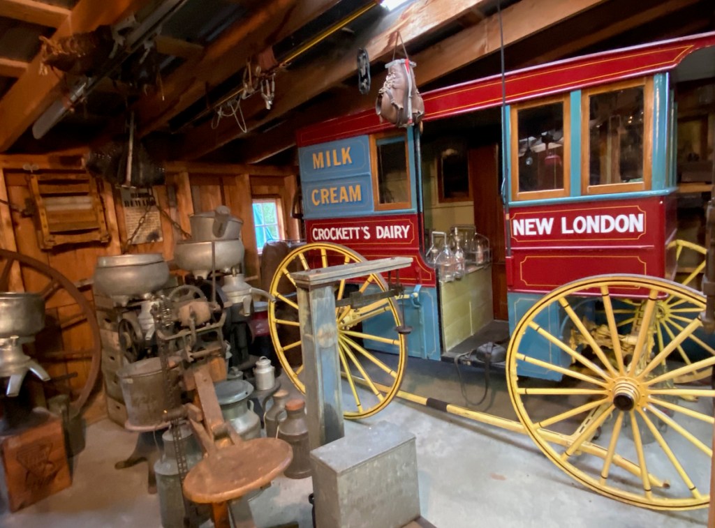 And, the unexpected bonus for the day THE ICE HOUSE Museum in New London, NH. I believe I heard of this amazing place years ago, and may have passed on the way to Pleasant Lake, BUT on the counter in the Potter Place train station was this flyer. A private collection, this wonderful collection is available and shared with the public with limited days and hours, But, with my great timing, I was in the right place at the right time. I later learned from Ashley (a member of the museum’s board) that at a recent meeting of area attractions she suggested everyone bring flyers to share — well it worked, and telling Ashley what prompted my visit she was pleased. She and I have emailed, and I will share this post with her to share that her “networking worked.”
