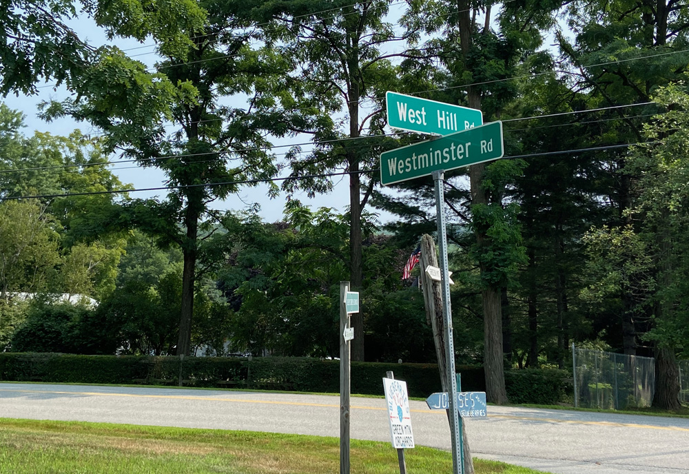 BB2 and I cut over the hills to Westminster West Road, which runs from Saxton’s River to Putney, to turn left toward Putney (you can come in from US Route 5). But first we turned right and visited a friend in West West (next to the barn where I found BB2 twelve years ago). After visiting we then headed to Putney turning right on West Hill Road.